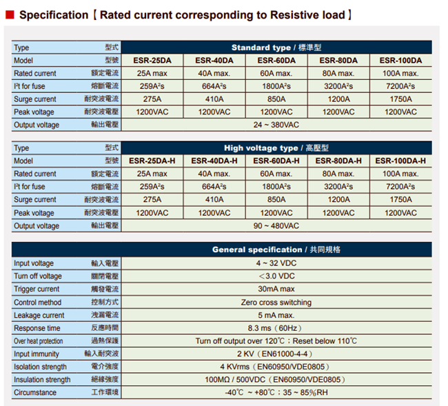 ESR系列高功率三相固态继电器选型资料下载地址