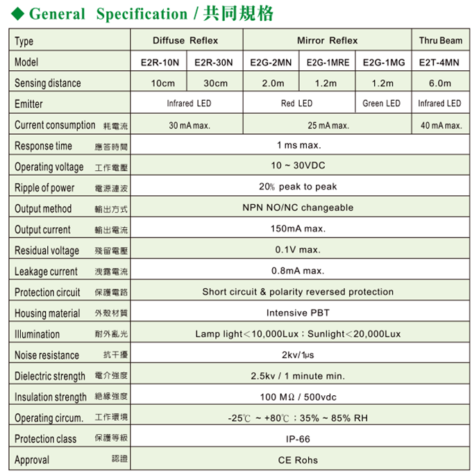 E2系列小型光电传感器